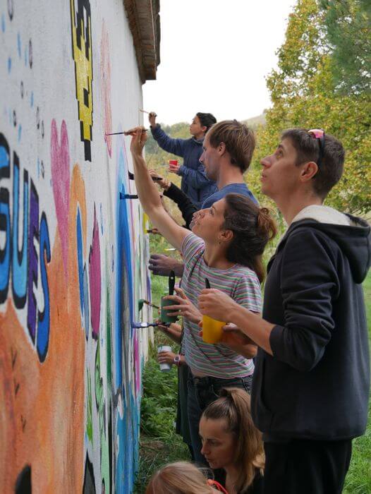 Comme écrit dans l’entrée, « libre d’être soi, ensemble » est le principe central du collectif. L’idée étant d’entretenir un espace où chaque personne peut s’épanouir individuellement et donc ensuite collectivement. Dans la pratique, cela veut dire qu’une partie du temps de chacun et chacune est allouée au bon fonctionnement du village (réunion d’organisation, accueil, cuisine, tâches ménagères, entretien…) et une autre sert à prendre du temps pour soi et faire vivre des projets personnels. En effet, les membres du village ont de l’argent de côté ou développent une activité rémunératrice, intérieure ou extérieure à Pourgues. Ainsi, une certaine autonomie financière est entretenue par chaque personne, ce qui permet de ne pas dépendre des activités de Pourgues pour répondre à l’ensemble de ses besoins. Les villageois et villageoises versent chaque mois un montant fixe à Pourgues comprenant toutes les choses qui sont mutualisées sur le lieu (charges, nourriture, entretien des espaces communs…). Pour Martine, cette organisation claire et structurée est très rassurante. « On sait où on va ». Elle donne l’exemple du processus d’intégration pour devenir villageoise, qu’elle termine tout juste. Il y a d’abord le premier contact avec l’écovillage d’une semaine minimum, puis, si c’est bon pour tout le monde, le mois en immersion qui peut déboucher sur l’année d’intégration. Pour chaque personne habitante, il est exigé qu’elle ait acheté des parts de Pourgues et qu’elle verse un apport mensuel au collectif.
