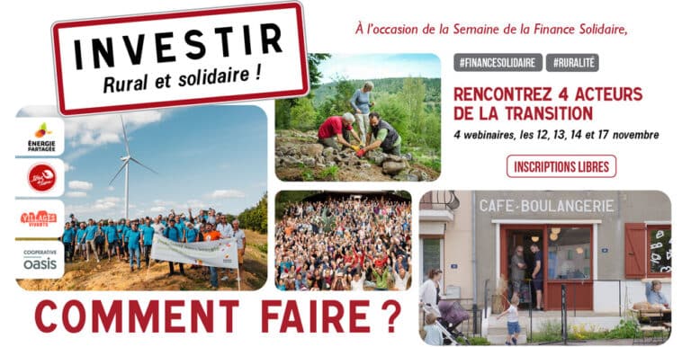 Dans les campagnes, ça bouillonne d'initiatives ! À l’occasion de la semaine de la finance solidaire (du 10 au 17 novembre 2025), découvrez les moyens d'y investir avec Villages Vivants, Terre de Liens, Énergie Partagée et la Coopérative Oasis !