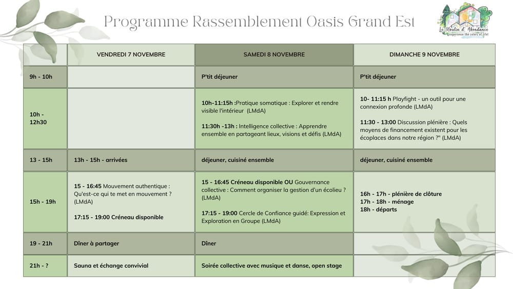 Un grand merci également à la Coopérative Oasis, dont l’inspiration, les ressources et l’esprit d’entraide ont largement contribué à faire émerger ce premier rassemblement régional.
