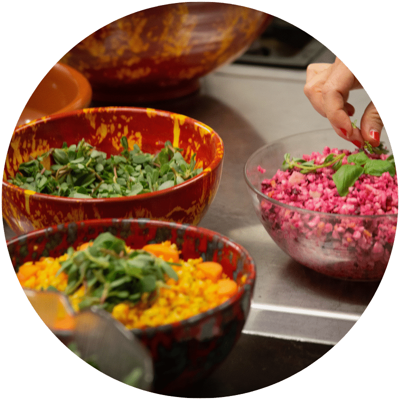 → Cuisine végétale, locale et de saison → Buffets joyeux, nourrissants et colorés → Une cuisine du cœur, au service du vivant
