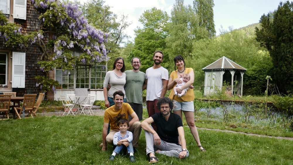 Les trois foyers de La Rub se sont rencontrés au fil de leurs démarches respectives pour créer un habitat partagé en Alsace. Le groupe a eu le coup de cœur pour l’Hôtel La Rubanerie à La Claquette, dans le Bas-Rhin, situé sur un magnifique terrain de 1,5 hectares traversé par le cours d’eau de la Bruche. Avec une source, une turbine hydroélectrique, la gare de Rothau à 5 minutes à pied tout en étant dans le massif des Vosges, c’est un lieu idéal pour un projet collectif écoresponsable.