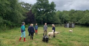 Finalement, le programme est décidé unanimement, et même s’il y a quelques déceptions (Quoi ? Pas de cache-cache géant?) Tout le monde est content de fouler le sol humide et de visiter le vaste domaine, accompagné du coq, de la poule, des trois moutons et des deux cochons.